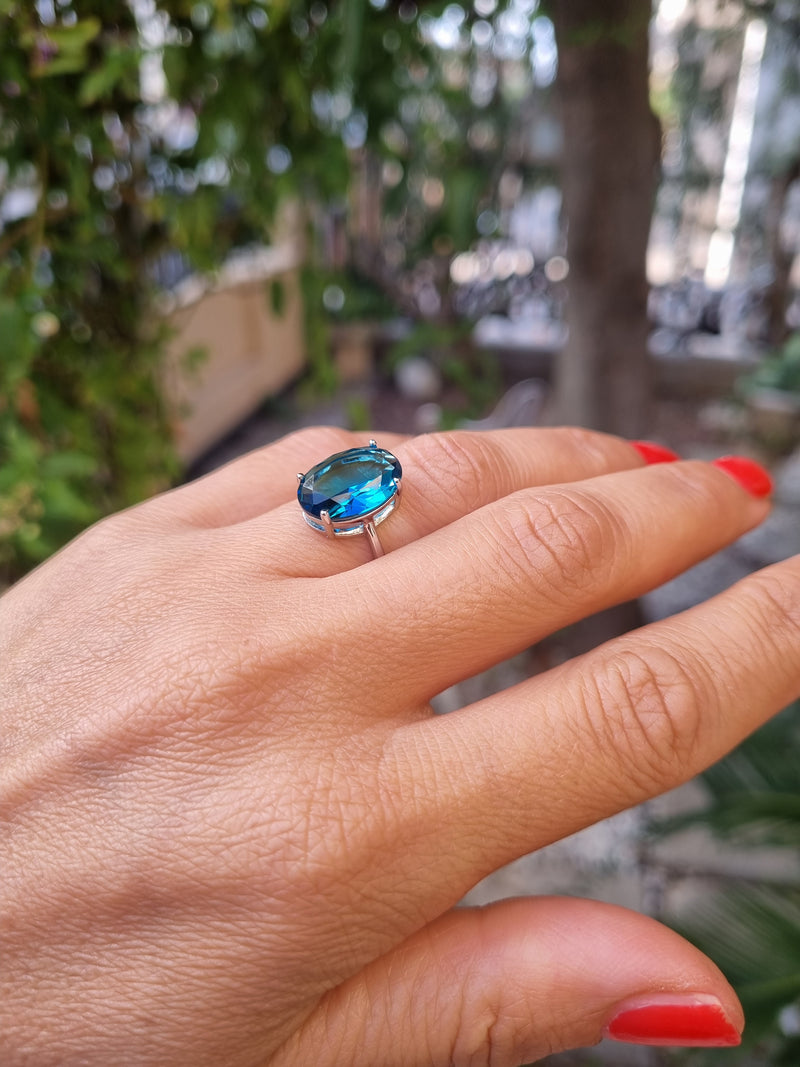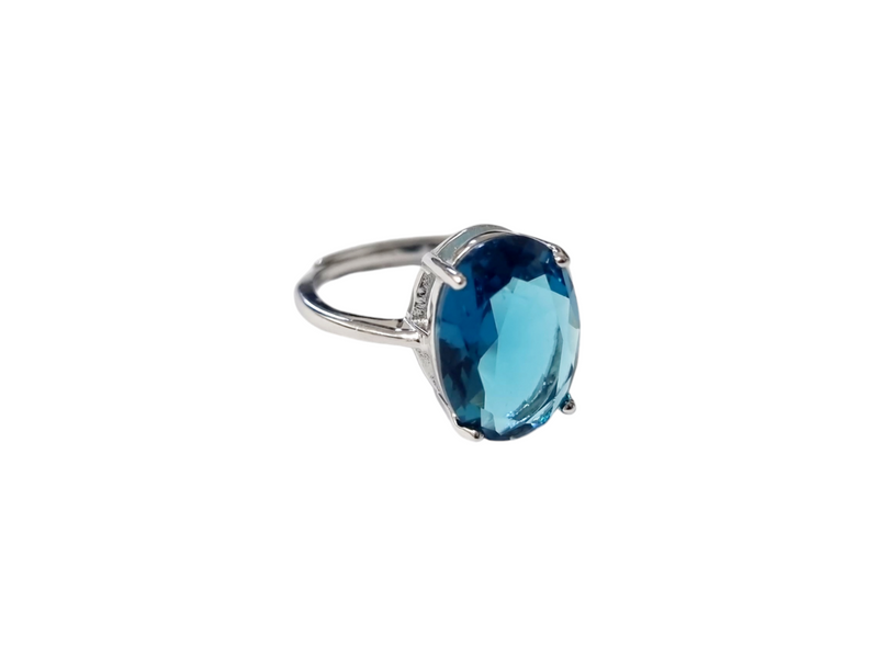 anello in argento 925 con pietra centrale zircone color blu cobalto