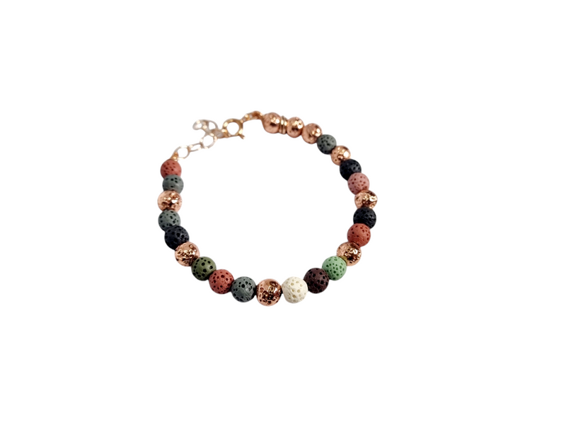bracciale in pietra naturale lava colorata ed elementi in argento rosa 925