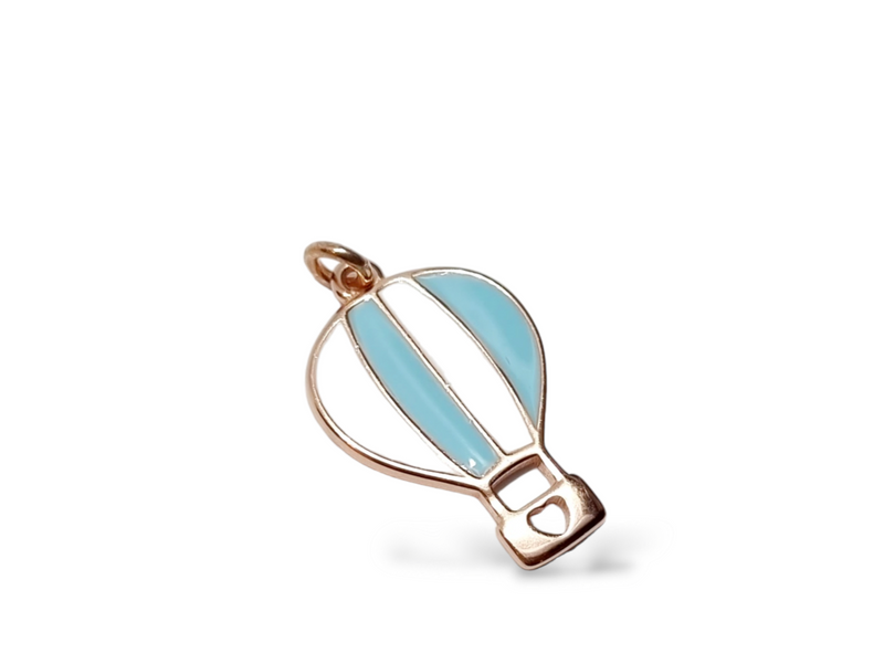 ciondolo mongolfiera in argento rosa 925° con smalto azzurro e bianco