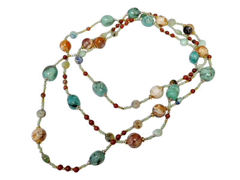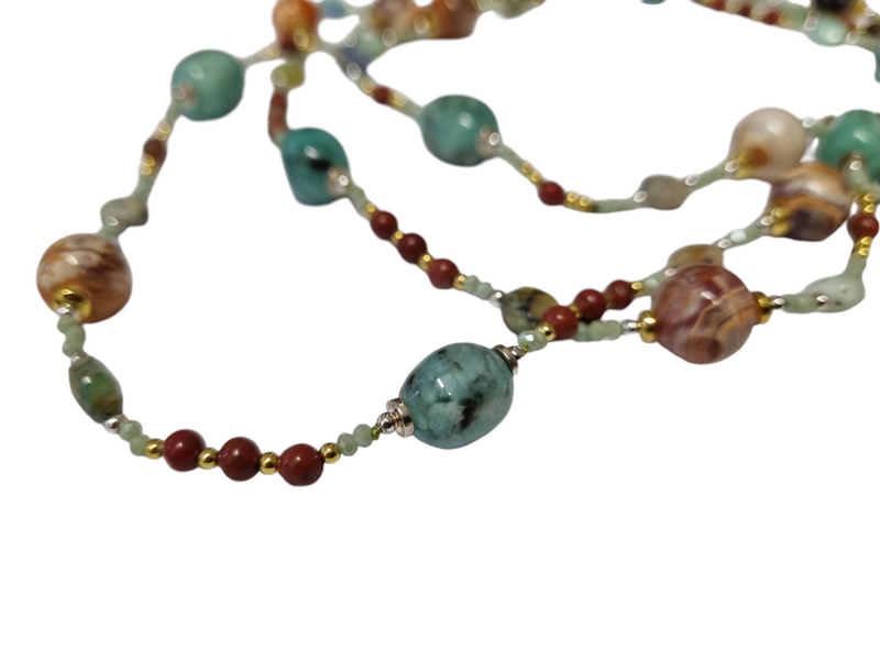 collana in pietra naturale amazzonite e agata fossile lunghezza 90 cm totale