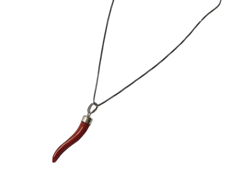 collana in argento 925 con ciondolo cornetto in corallo naturale rosso