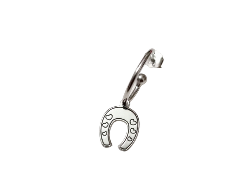 mono orecchino cerchietto in argento 925° con ciondolo ferro di cavallo